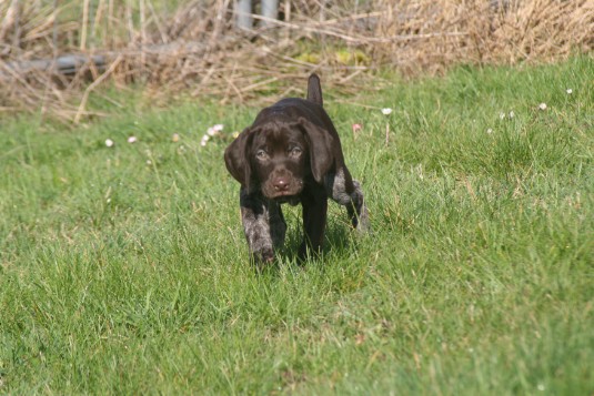 Noeé ist eine schwarz-rote, Rauhaar Kaninchenteckel Hündin. Sie ist am Raubwild anhaltend laut, bringt es gut in Bewegung, im Bau konsequent vorliegend, mit guter Schärfe.